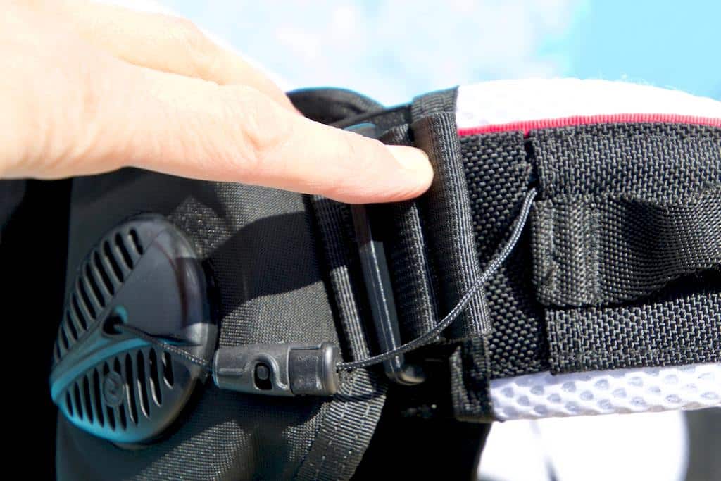 - The fastening system between the straps and the back of the BCD. Although it is very practical during assembly and disassembly of the BCD, it has probably come off once due to the manipulation of the equipment on the zodiac. Is there a risk of this happening again?