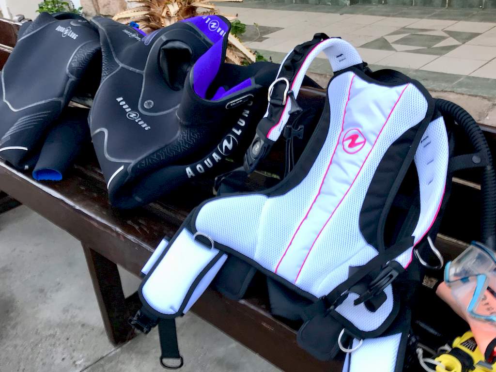 I didn’t choose the color but you have to admit that my Aqua Lung Rogue BCD looks nice. I was dreaming for a long time to find colors in diving, immediately I felt in love with the look of this BCD. Even though I usually never wear pink.