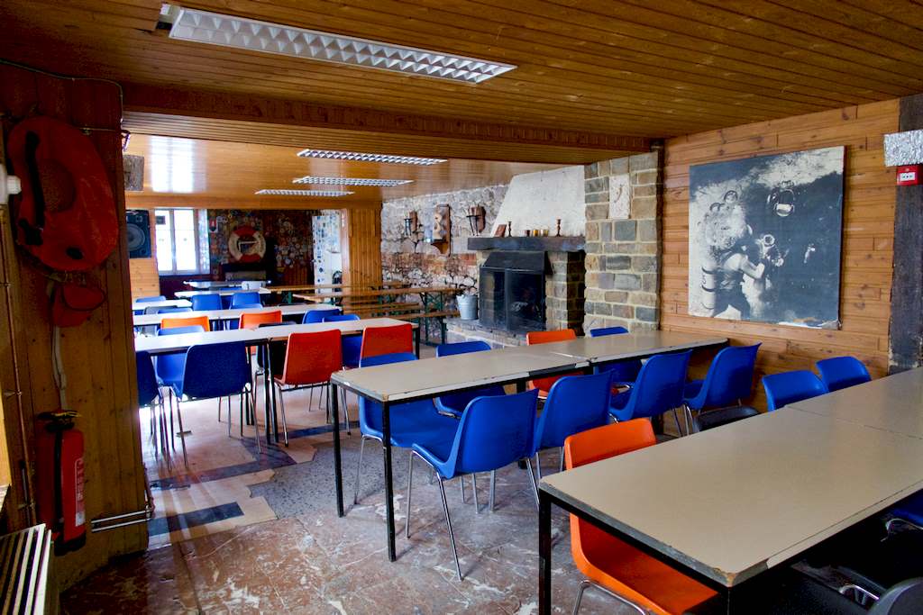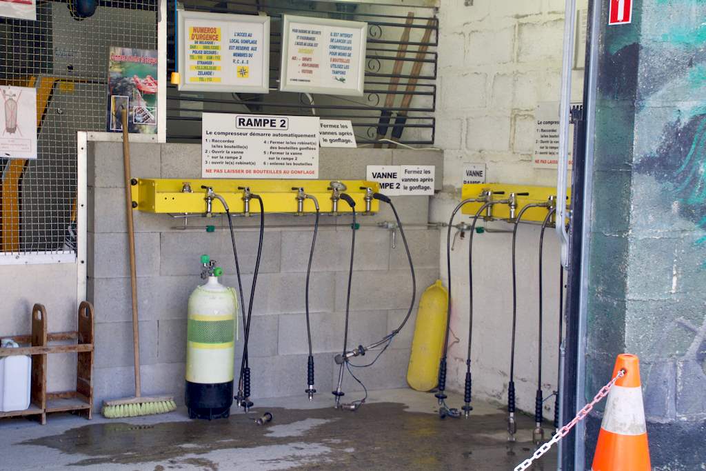 Le deuxième se situe après la grille. On y retrouve les vestiaires, la zone de gonflage, la plateforme où trône la maquette de la carrière juste à côté de Poséidon, le tableaux des palanquées et les espaces de mise à l’eau