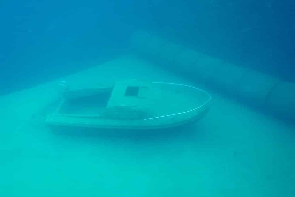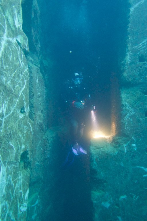 Comme prévu dans notre briefing, nous descendons le long du tombant… jusqu’au voilier. L’eau est limpide. Contrairement à d’autres lieux que je fréquente régulièrement, cela ne donne pas l’impression que nous sommes à -30m.