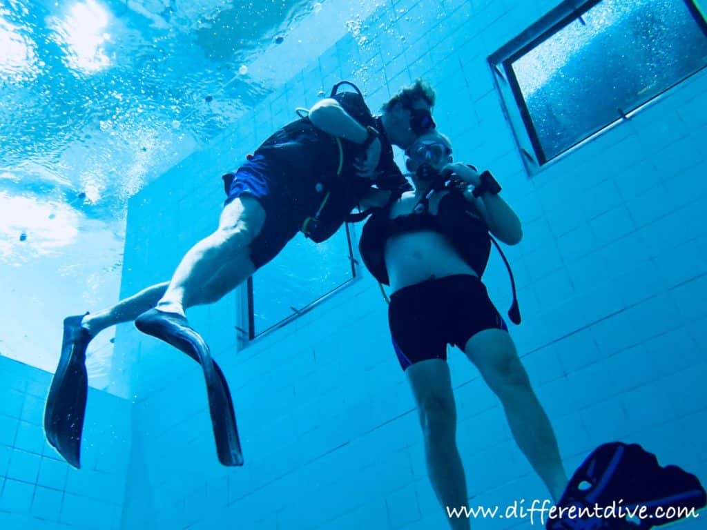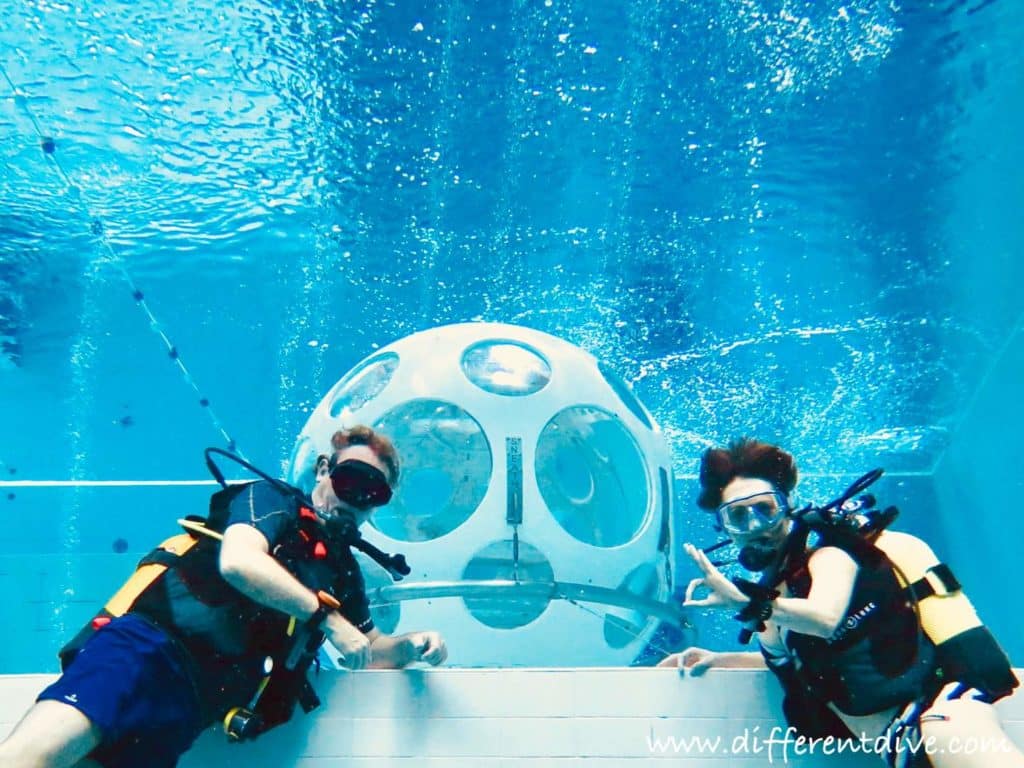 En attendant, John, Didier et moi-même profitons de l’instant pour nous amuser ensemble dans cet incroyable espace indoor de plongée.